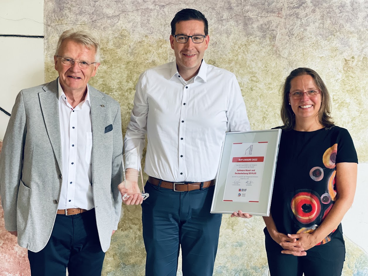 01. Juli 2022 BVF Award für Softwaremodul Wand- und Deckenheizung 3D Plus