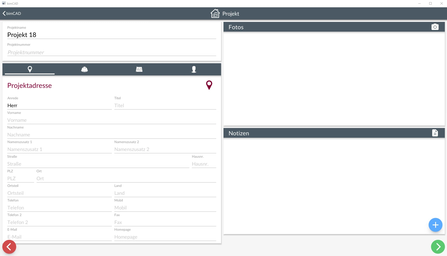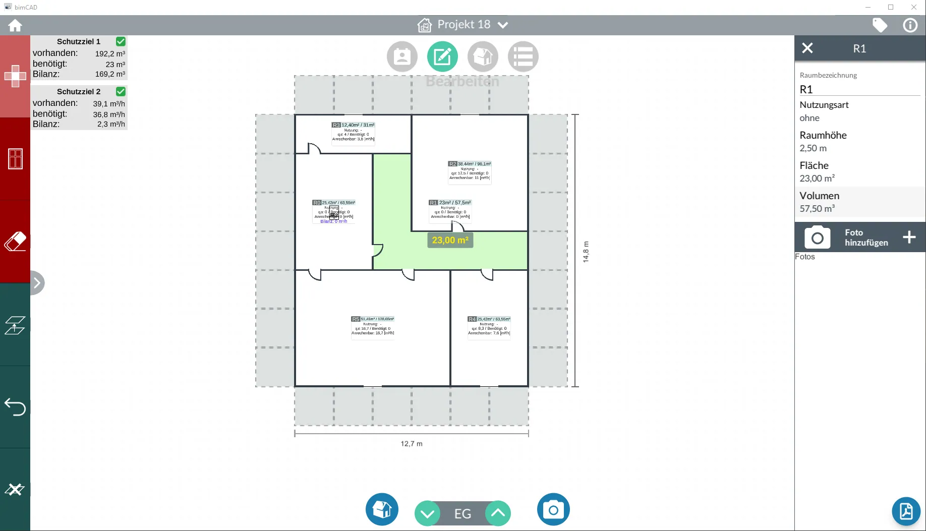 Erfassung von Räumen, zugehörigen Geometrien und Raumobjekten wie Feuerstätten, Fenster, Türen, Zu- und Abluftelementen