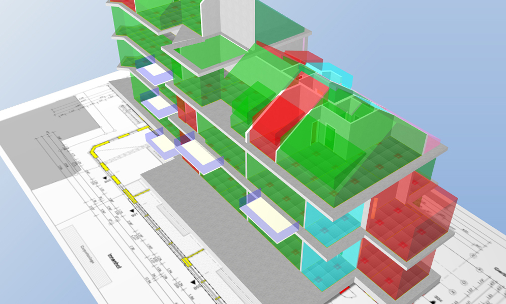 Einfache und schnelle Gebäudeerfassung von bestehenden Einfamilienhäusern bis zum neuen Bürokomplex. Neben freien Zeichnungen können Bestandspläne in verschiedenen Formaten (PDF, JPEG, DWG/DXF) eingepflegt, digitalisiert und in 3D abgebildet werden.