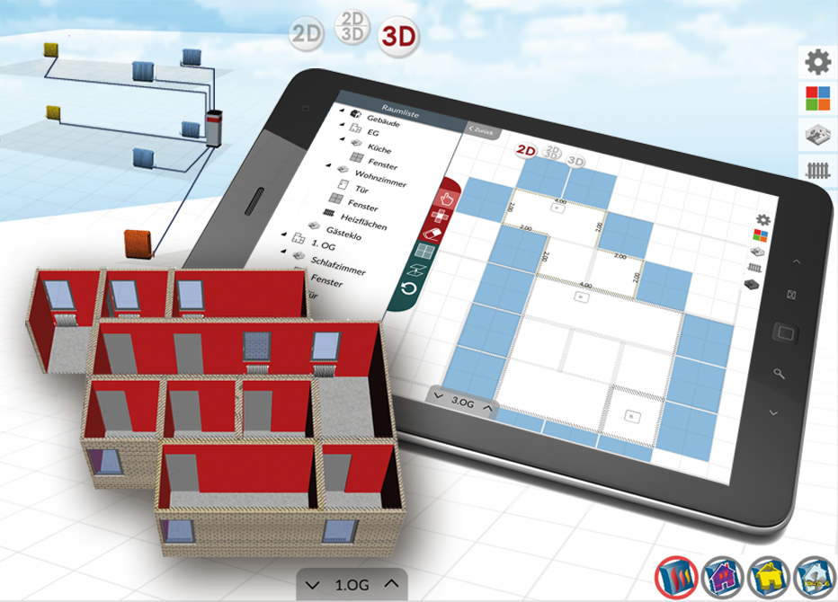 Das Zusatzmodul als mobile Erweiterung der Optimus Duo 3D sowie 3D PLUS-Software zur gezielten Aufnahme von Gebäude und Anlagendaten für den hydraulischen Abgleich: Erstellen Sie in wenigen Schritten auf Tablet oder Smartphone raumweise den Gebäudegrundriss mit Bauteilen, Heizkörpern, Ventilen und mehr.