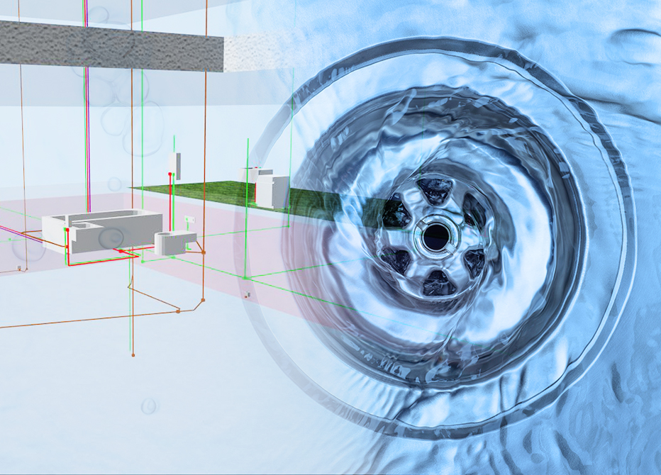 Berechnung und Erstellung eines 2D- oder 3D-Abwassernetzes in HottCAD. Auslegung und Berechnung von Abwassersystemen nach DIN 1986-100; DIN EN 12056 innerhalb von Gebäuden.