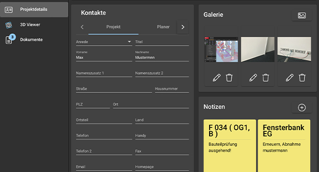 Bauteilgalerie: ablegen von Bildern und Notizen zu Elementen des Projektes und Abgabe als summierte Datei
