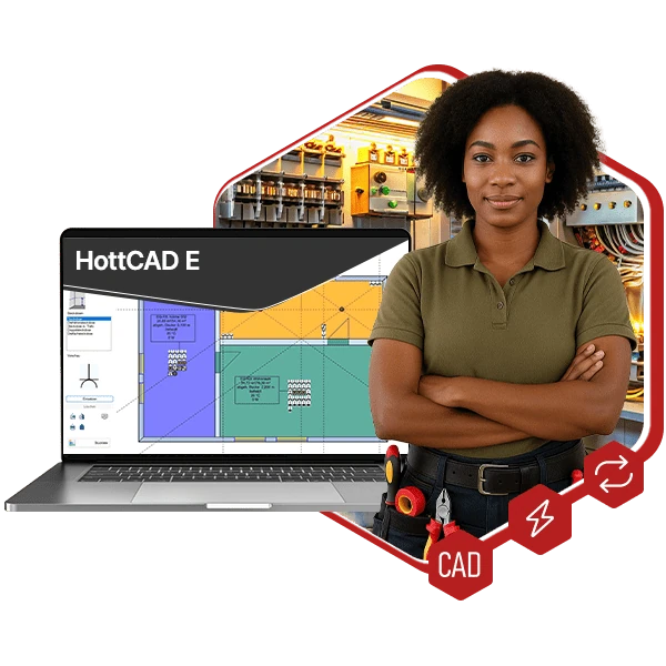 Die Handwerker-Software auf HottCAD Basis dient zur schnellen Gebäudeerfassung und Planung im Elektro-Handwerk. Schnelle Platzierungen von Elementen aus der integrierten Elektrodatenbank machen die Auslegung auf den Baustellen einfacher und effizienter.