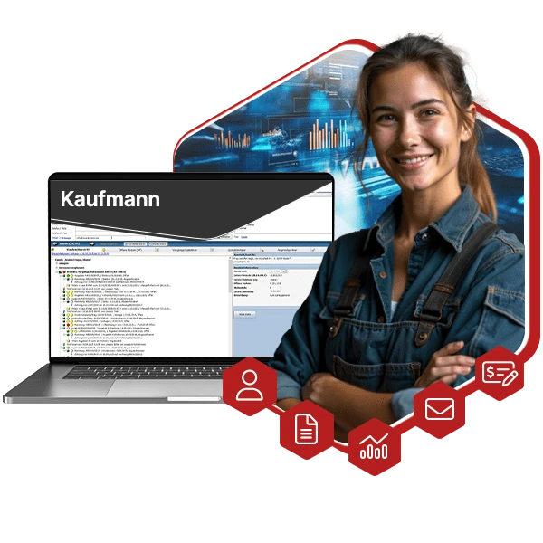 Der Kaufmann vervollständigt den Workflow durch die Übernahme der Gebäude- und Anlagendaten zur schnellen Kostenermittlung und digitalisiert weitere administrative Aufgaben im Büro und Unterwegs. Die perfekte Lösung für Mittelstand (KMU) und Handwerk.