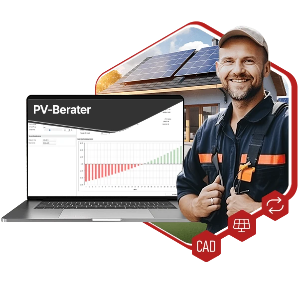Für eine schnelle Ertragsberechnung sowie Ergebnisanalyse mit wirtschaftlicher Schnellbetrachtung von PV-Anlagen als ideale Ergänzung für Energieberatungs-Dienstleistungen.