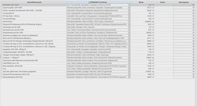 ÖKOBAUDAT- Datenbank (Version 2020_II) zur Zuweisung der verwendeten Materialien