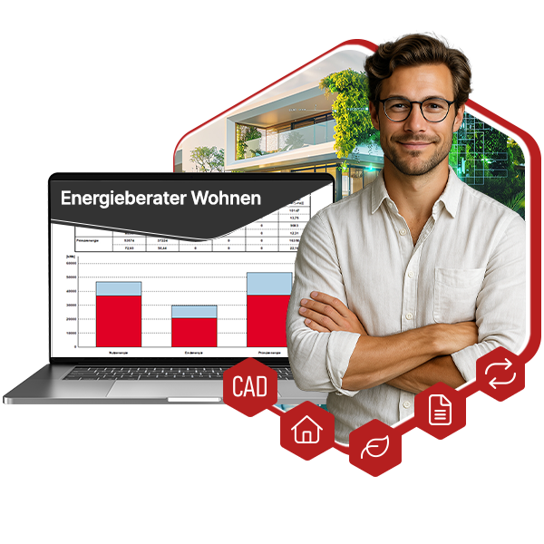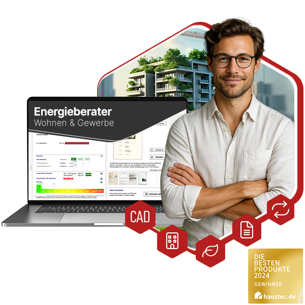 Mit dem Energieberater Wohnen & Gewerbe lassen sich die energetische Planung und Bewertung von Wohn- und Nichtwohngebäuden nach DIN 18599 durchführen. Sie erstellen zügig Energieausweise, Sanierungskonzepte und Förderanträge – im Bestand und Neubau.